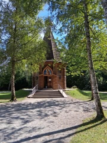 Сейчас на территории Дахау построены католический памятный центр и центр иудаизма, а немного дальше, в лесу православная церковка.