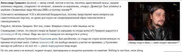 Досье из энциклопедии «Луркморье»: «Гриценко Александр Николаевич. Чем знаменит?