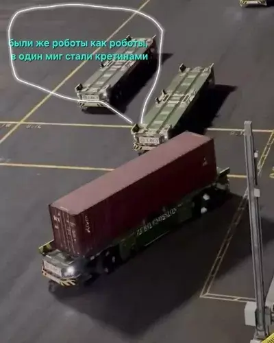 Ну так вот. В порту каждый контейнер едет на беспилотной тележке. Роботы везде, интересно. Едут не по правилам право/левостороннего движения, а каждая следующая полоса встречная, и так полос в пять. Причём роботы не путаются, впускают в свою полосу поворачивающих, соблюдают скоростной режим. Красота!