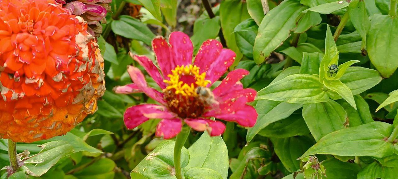 Осень, конечно берет свое. Но и лето особо уходить не торопиться. Бабочки летают. Только очень маленькие какие-то, еле их видно. Может сможете разглядеть одну на листике?