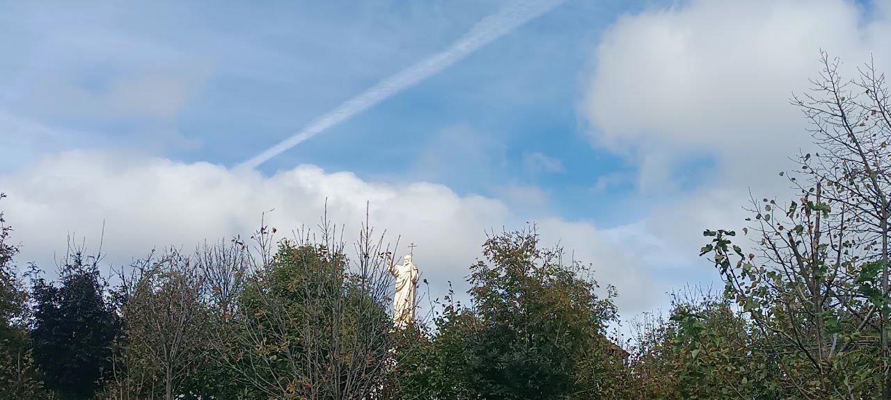 Первое, что бросилось в глаза - покров над скульптурой Иисуса Христа.
