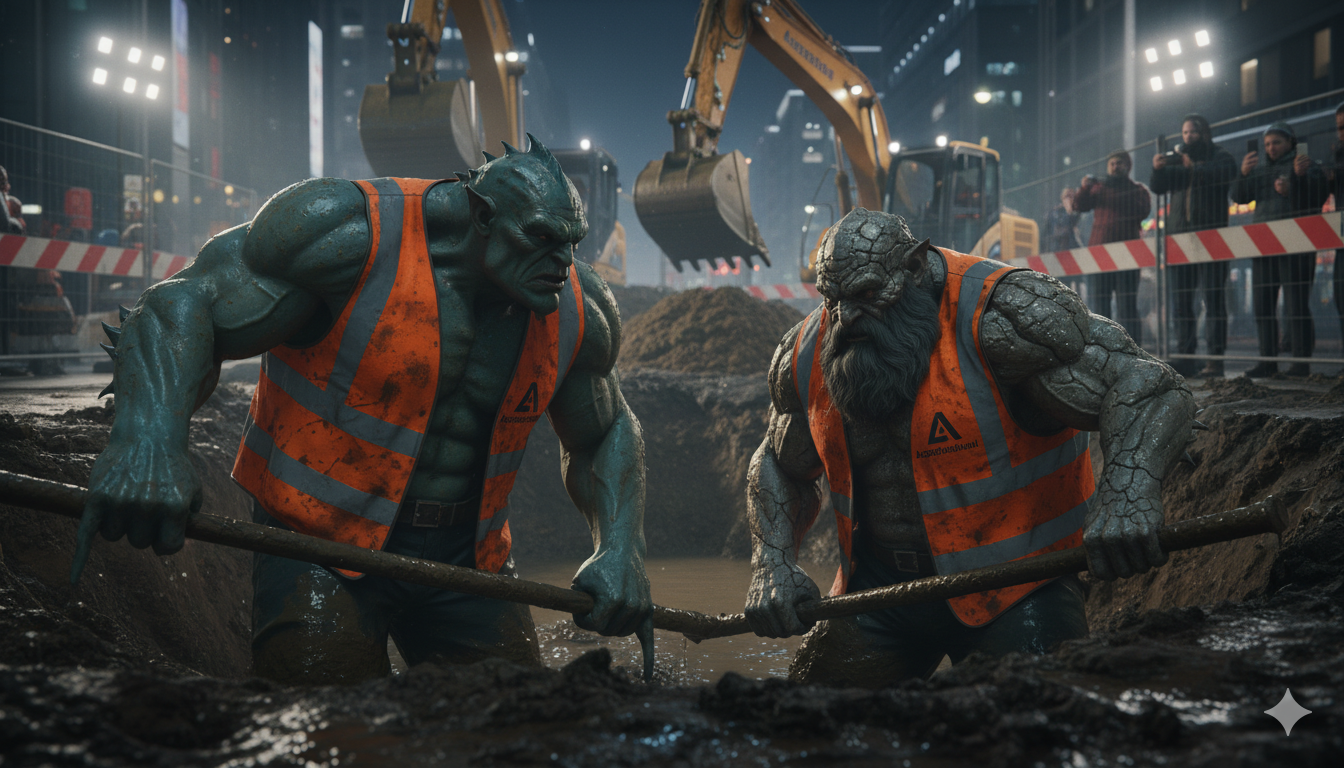 Посвящается всем коммунальщикам, особенно тем, кто трудится в котлованах, по колено в воде, днем и ночью, в любую погоду. Их самоотверженный труд достоин воспевания в сагах.