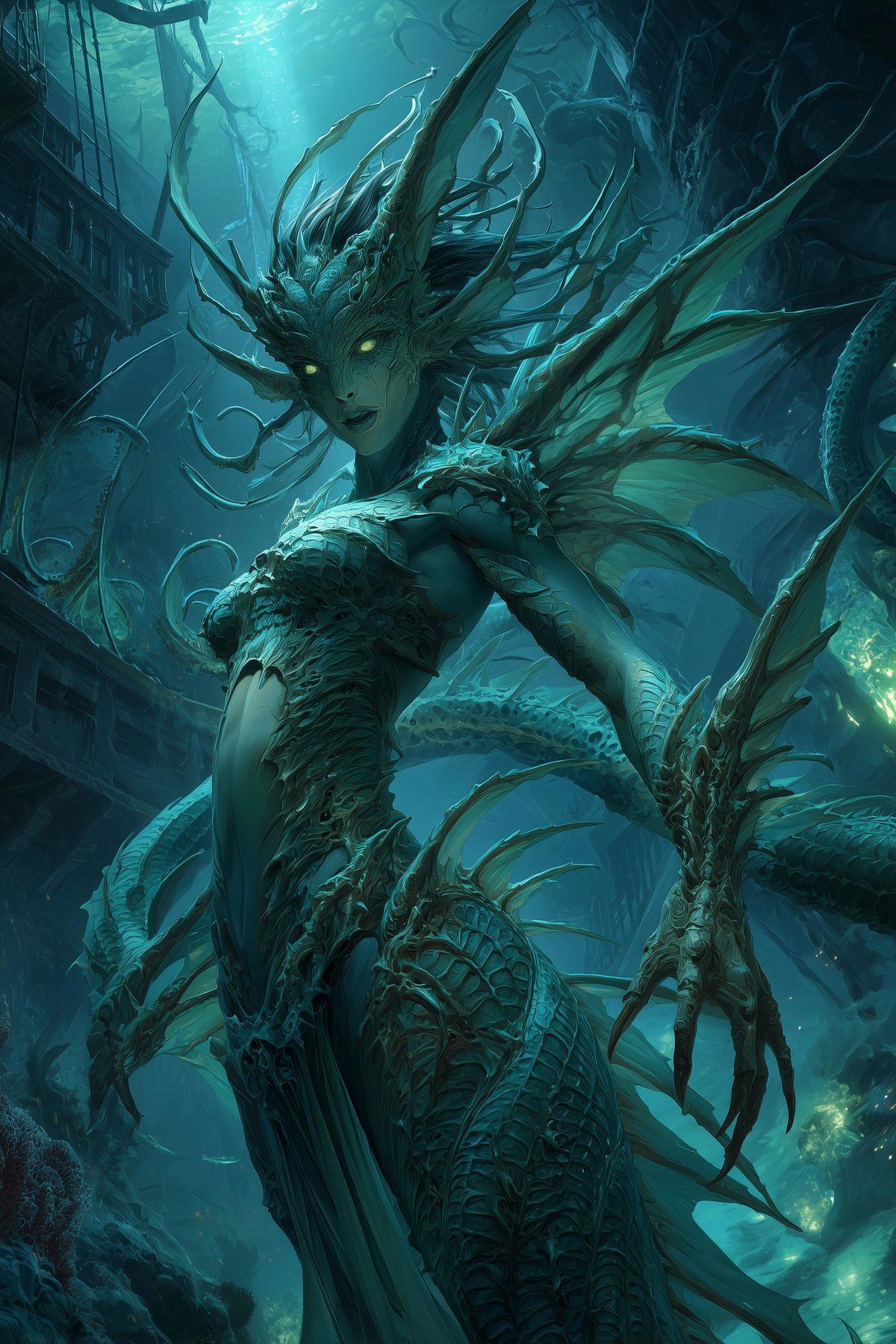 > Сирены — не палачи, но и не спасители. Они — глас приговора, воля глубин. Подчиняются королеве Талассии, но не живут в столице — слишком сильна их связь с морской яростью.