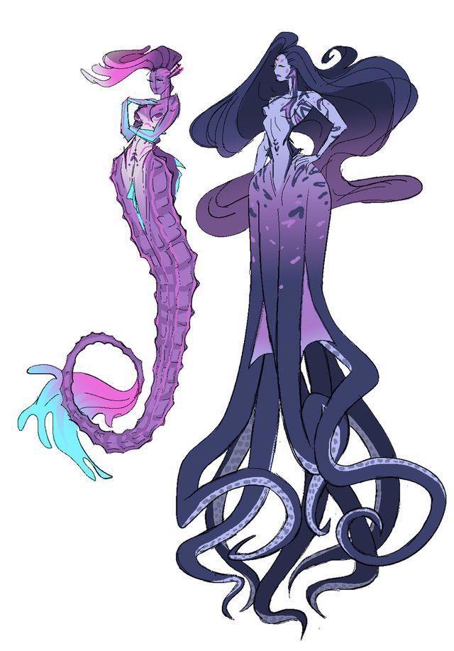 > В отличие от русалок, сирены не столь пластичны. Их тела вытянуты, с плавниками, шипами и перепонками. У них есть хвост — они созданы для стремительного рывка, для охоты и боя. Но они также имеют сухопутный облик