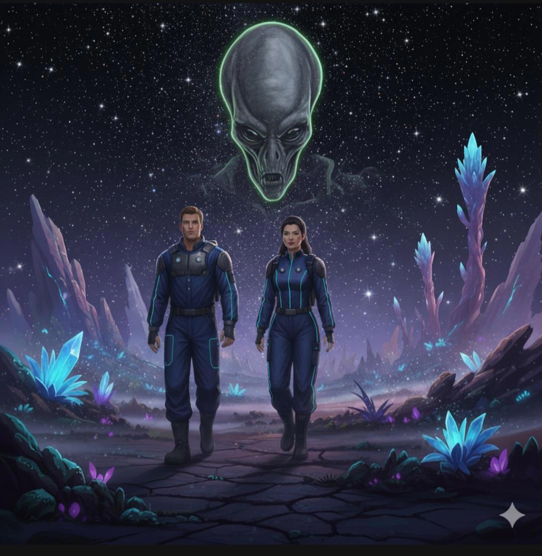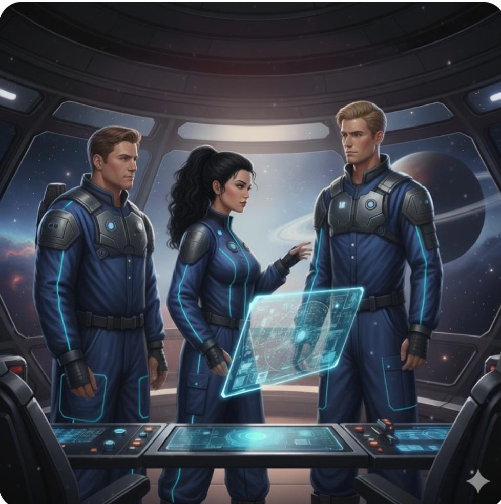 В качестве извинений, вот такая картинка к книге Космос на троих от меня и нейросети.