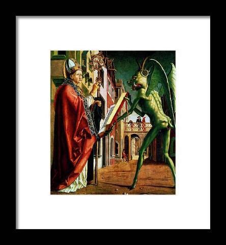 Дьявол, протягивающий Книгу пороков святому Августину