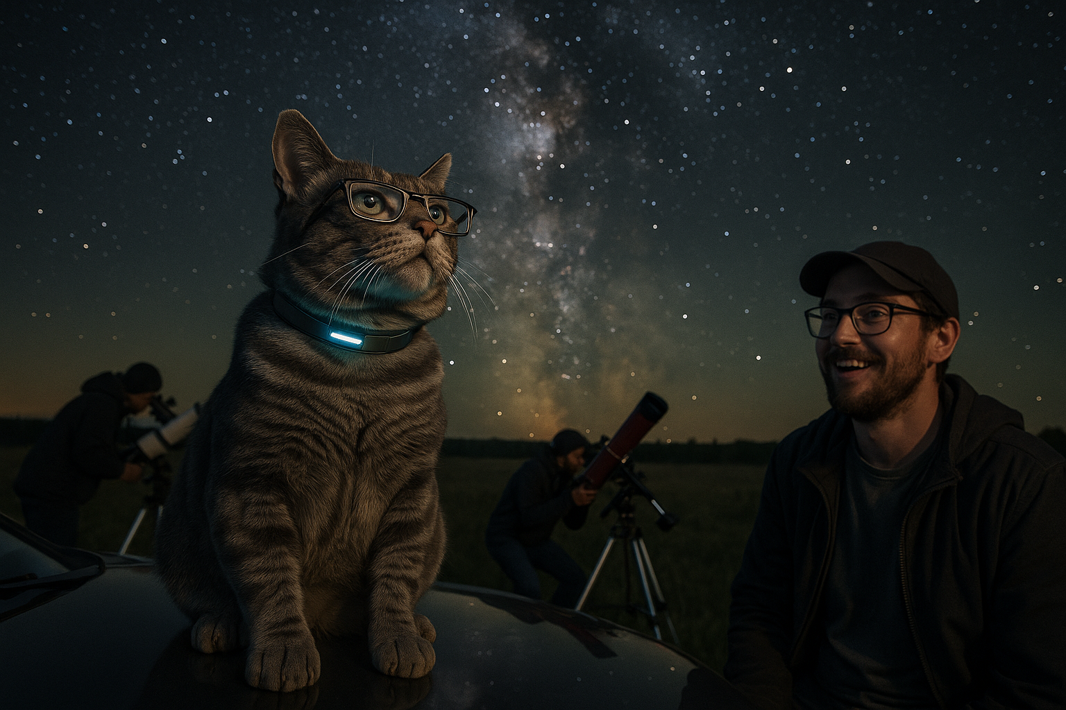 Мяу. С вами Макс. И сегодня мы поговорим о великих космических тайнах. Нет, не о тёмной материи или природе сингулярности — с этим и так всё ясно. Речь о более приземлённой, но оттого не менее загадочной проблеме: почему все эти ваши поэты, музыканты и влюблённые парочки так заливаются про красоту ночного неба?