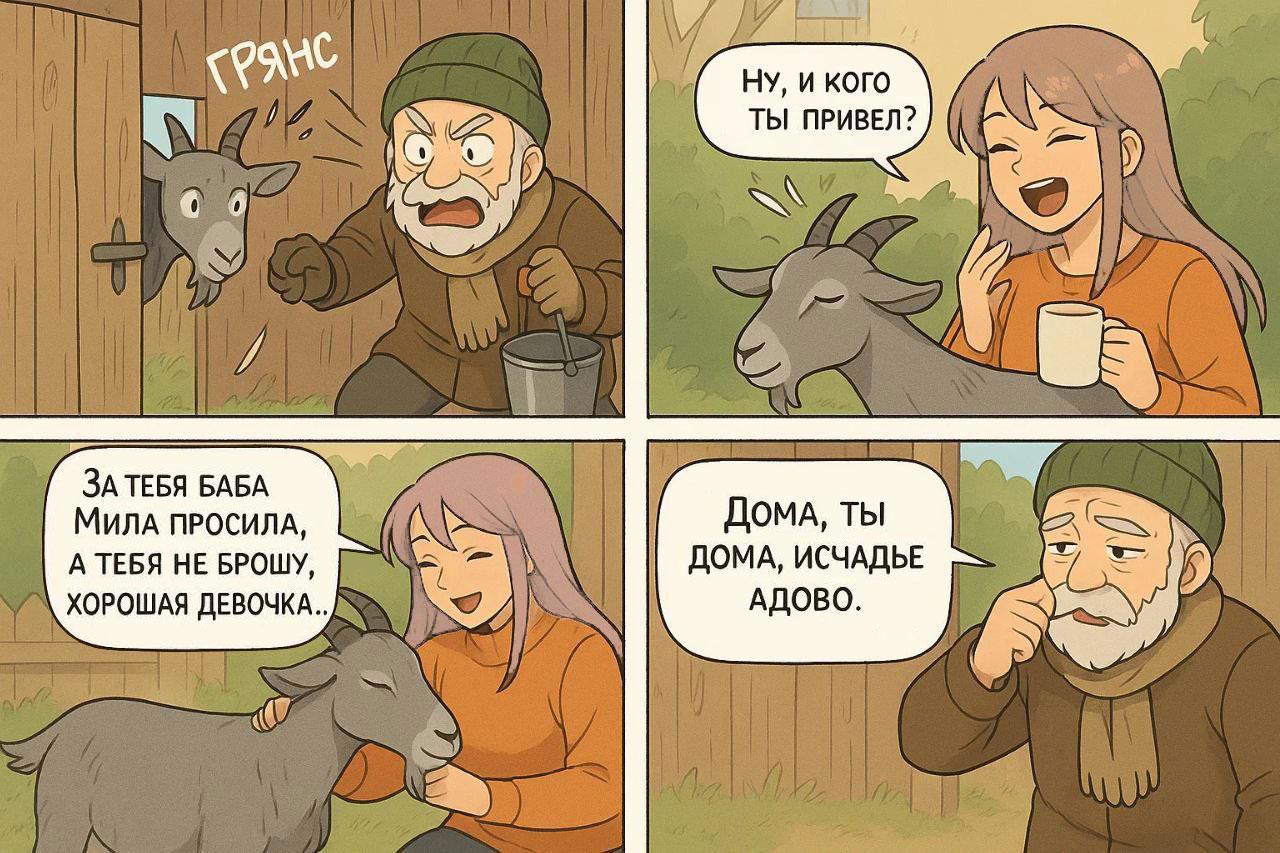 — За тебя баба Мила просила, я тебя не брошу, хорошая девочка, — приговаривала Лиза, почесывая голову, спину и за ухом своего рогатого наследства.