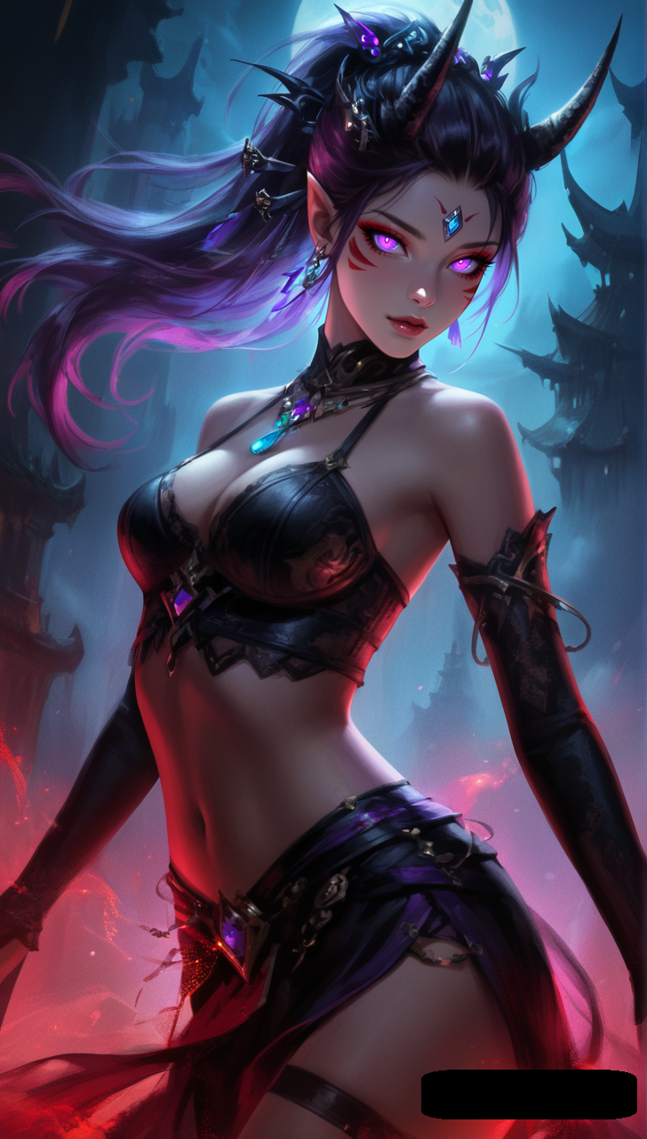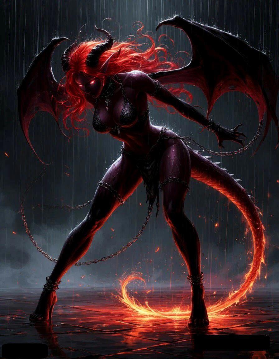 (К сожалению, ИИ ОЧЕНЬ плохо делает им хвосты, поэтому на изображениях их нет. Попался только на одной, но почему-то с крыльями - их у демонесс - НЕТ!)