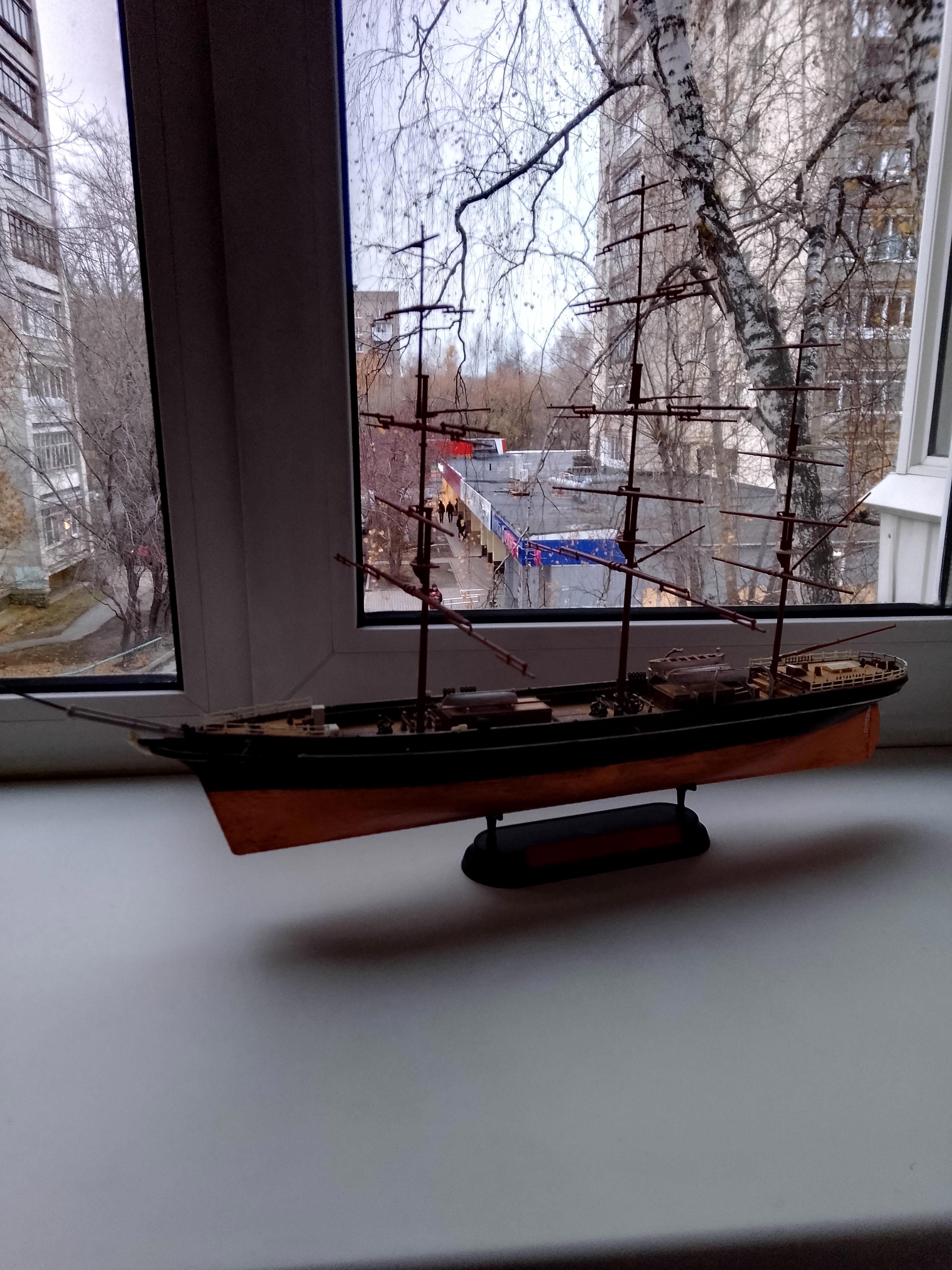 Кисточкой :) А потом взялась за судоремонтные работы. Сами понимаете, коты в доме - естественные враги флота. У моей "Катти" были отломаны напрочь грот-рея, бушприт, гик и гафель на бизани. Я путаю гик и гафель, да. Я девочка и с трудом отличаю Денеца от Нимица, и их обоих - от "Тирпица". Однако мне доводилось вести вменяемый диалог с теми, кто отличает, и я довольна этим, разумеется. В общем, одна штука никак не клеилась, клонилась под собственным весом, и я догадалась зафиксировать ее на швейную иголку. Кто молодец? Я молодец.