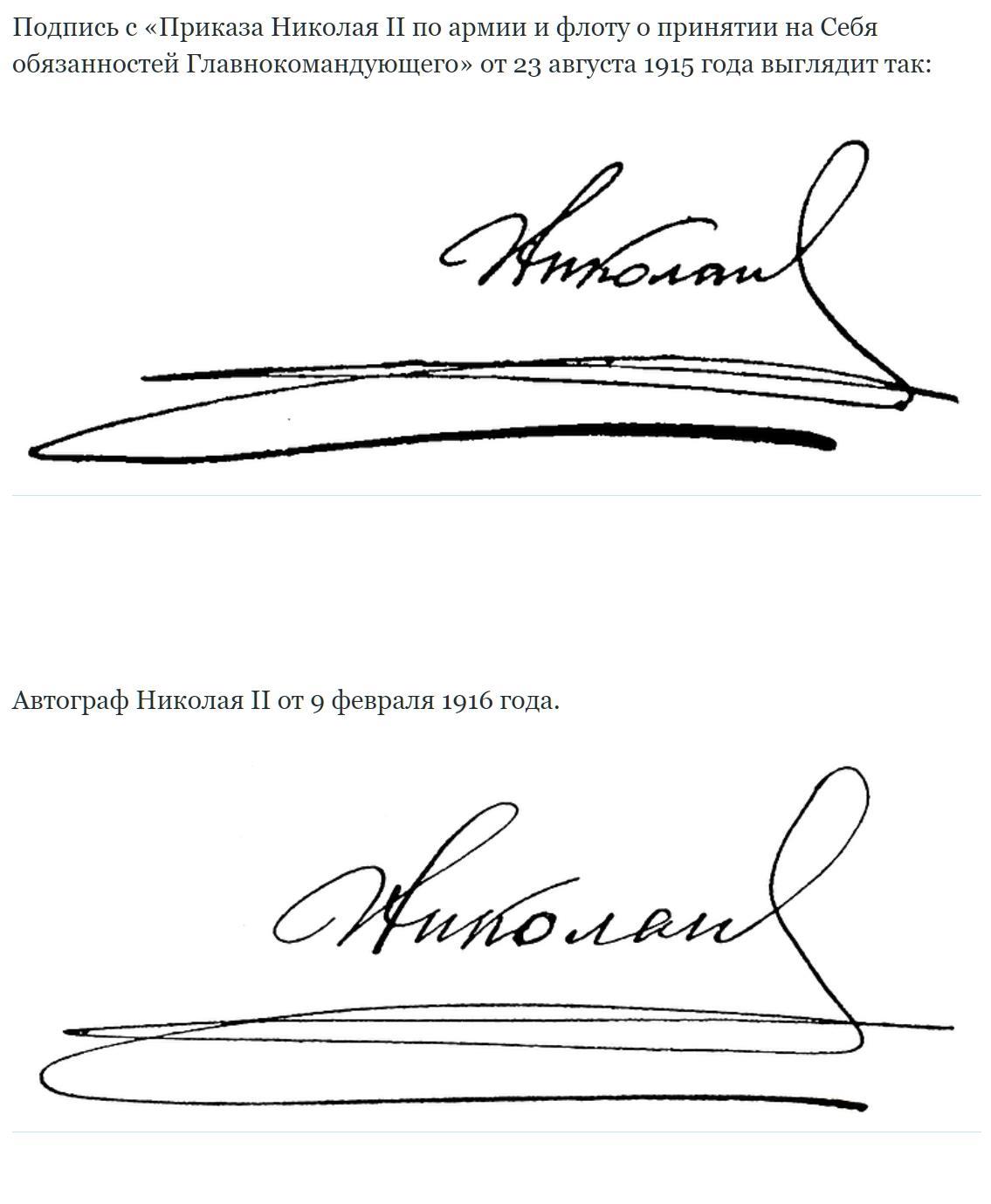 В таком случае неясно, каким образом подписи Государя оказались на общем листе, если сами заговорщики уверяют, будто Николай II подписывал «отречение», напечатанное на телеграфных бланках. Тем любопытнее будет тщательно изучить эти подписи. Посмотрим на них внимательно.