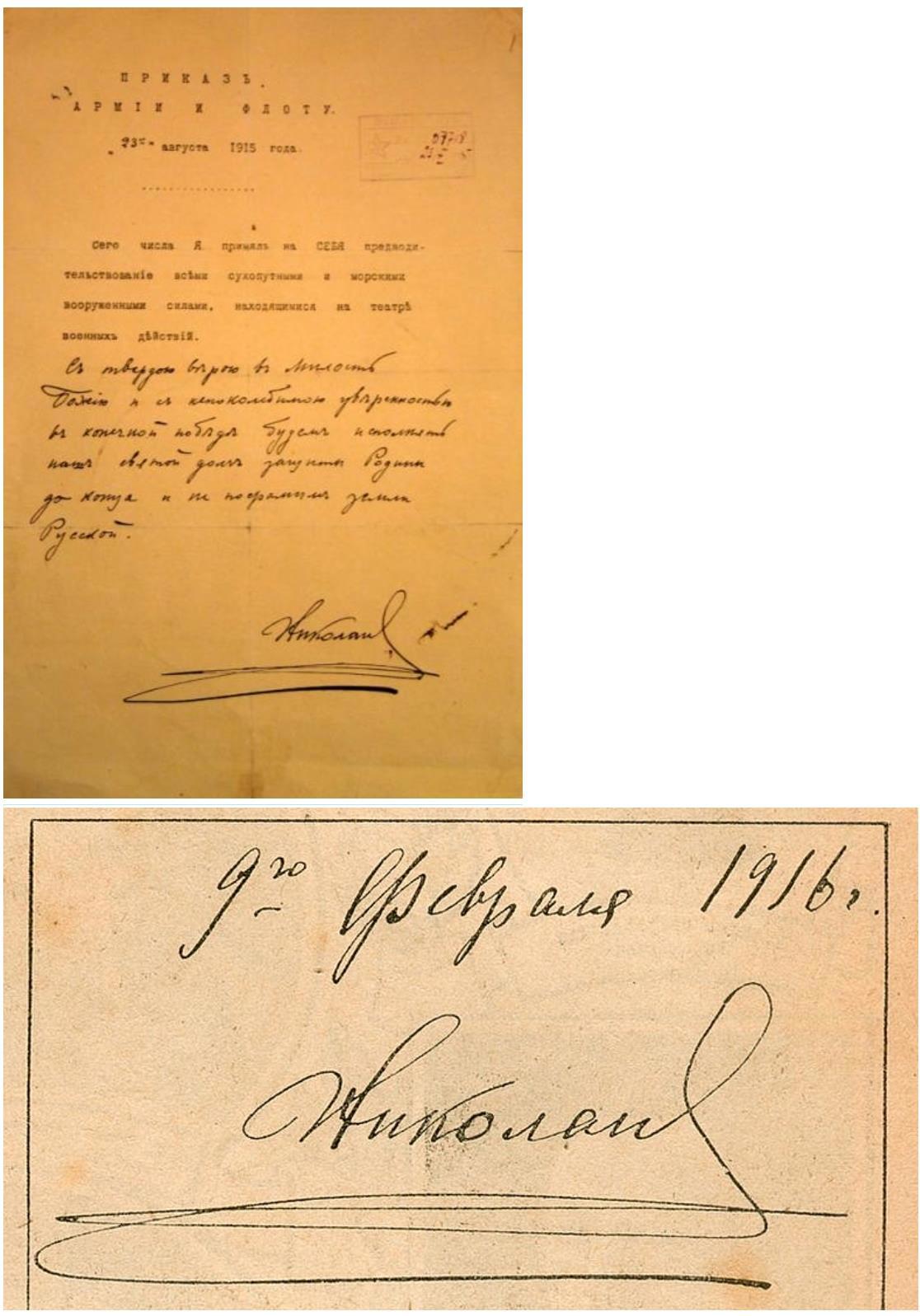 1. «Приказ Николая II по армии и флоту о принятии на Себя обязанностей Главнокомандующего» от 23 августа 1915 года и