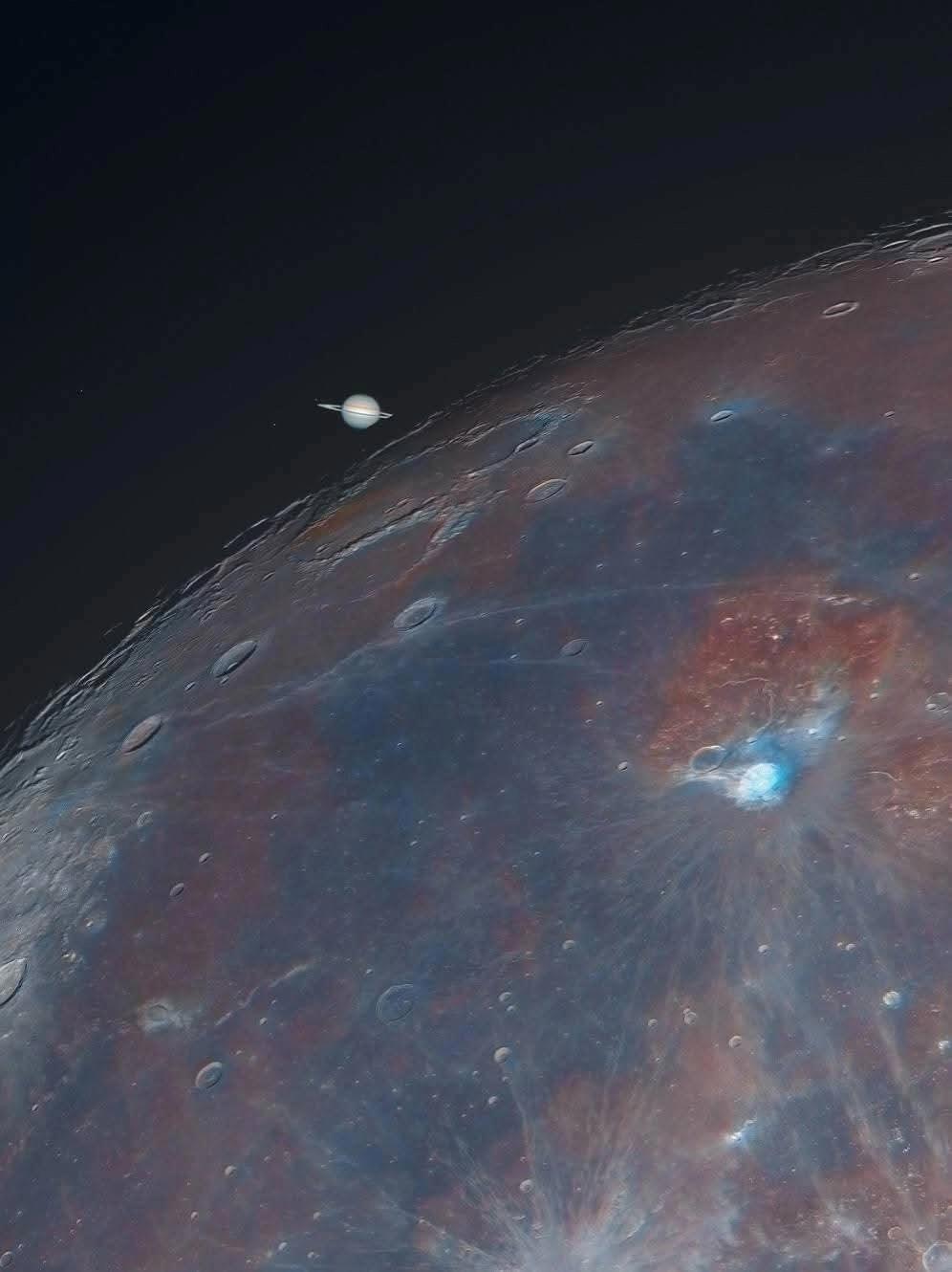 Астрофотограф Эндрю Маккарти поднялся на вершину вулкана Мауна-Кеа — одно из лучших мест на планете для наблюдений за звёздами — чтобы снять редчайшее событие: оккультацию Сатурна Луной. С помощью 14-дюймового телескопа он запечатлел тот самый миг, когда Луна "поглотила" Сатурн. Яркость Сатурна увеличена, чтобы она лучше соответствовала яркости Луны. Конечно, это всего лишь оптическое совпадение — Луна находится на расстоянии ~384 000 км, а Сатурн в среднем — 1,4 миллиарда км от Земли. И всё же на снимке они кажутся соседями. Вот что действительно впечатляет: