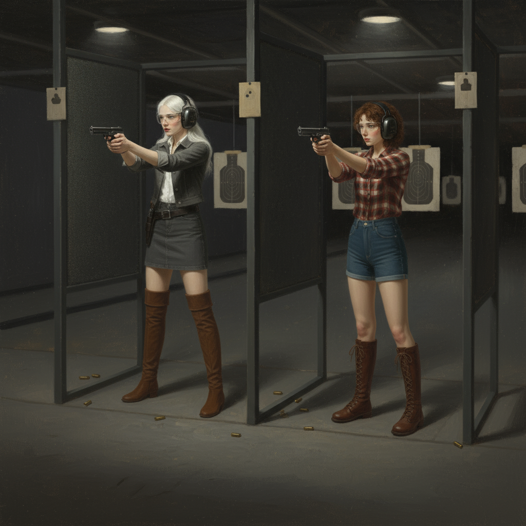 Это не везде удалось, но по идее рослая Мария носит обычно лоферы без каблуков, а карманных габаритов Эмилия - "лодочки" на шпильках даже тогда, когда это неудобно, хехе. Возможно, в беду в логове бандитов они попали именно из-за того, что кое-кто слишком громко цокал каблуками по бетонному полу.
