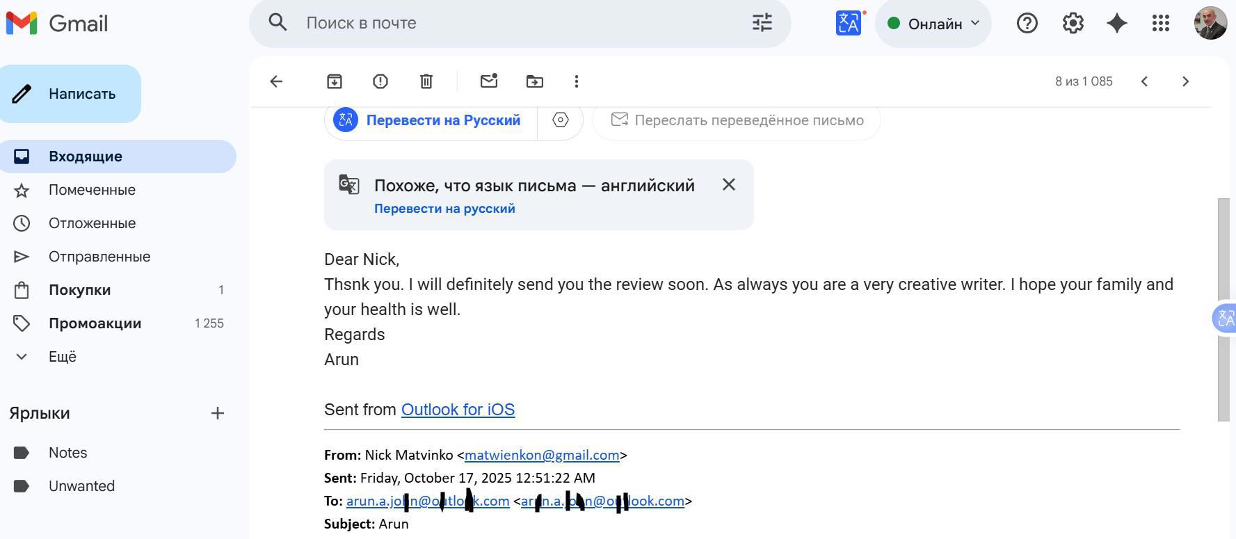 Отправил рукопись на отзыв своим Британским друзьям носителям языка (10 человек). Надо учитывать, что они работающие люди, и времени читать мои опусы мало.