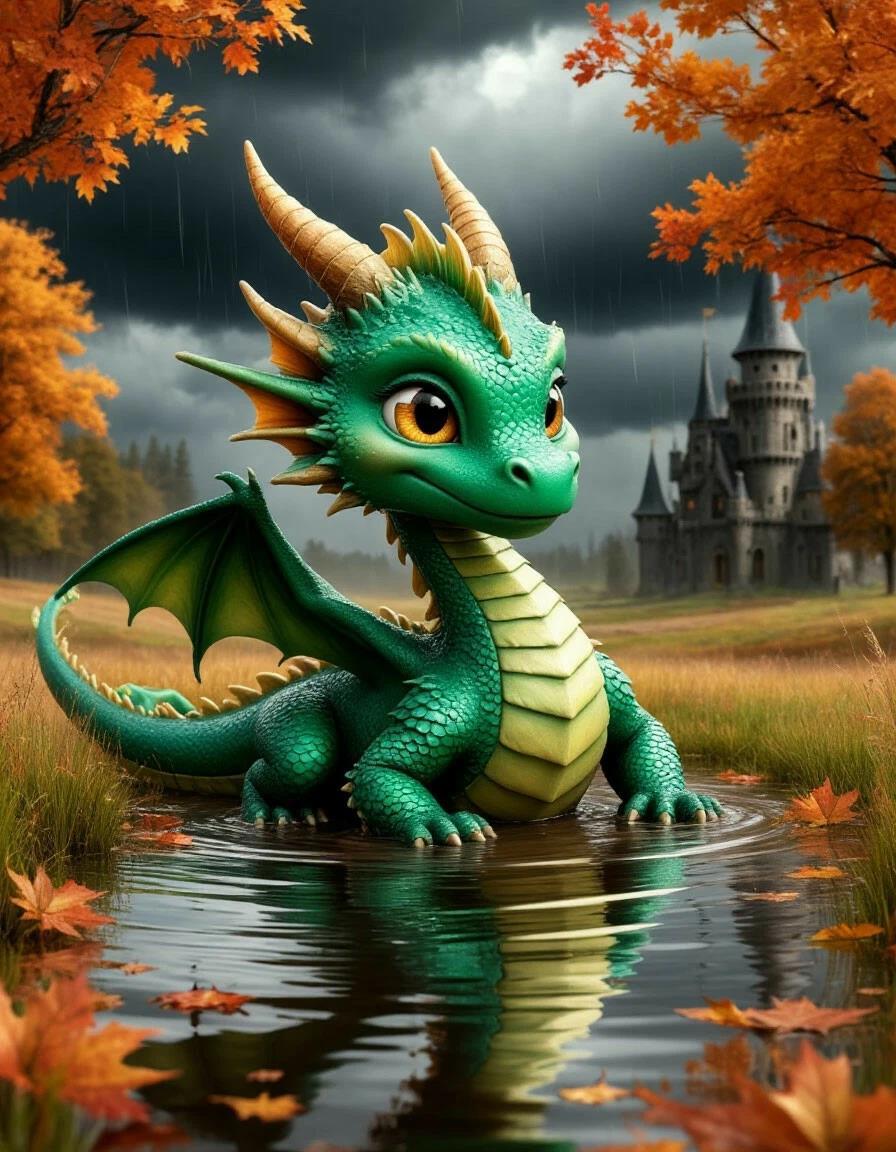 Дракон плюхнулся в лужу и тоже посмотрел на тучи , не моргая своими медовыми глазами.