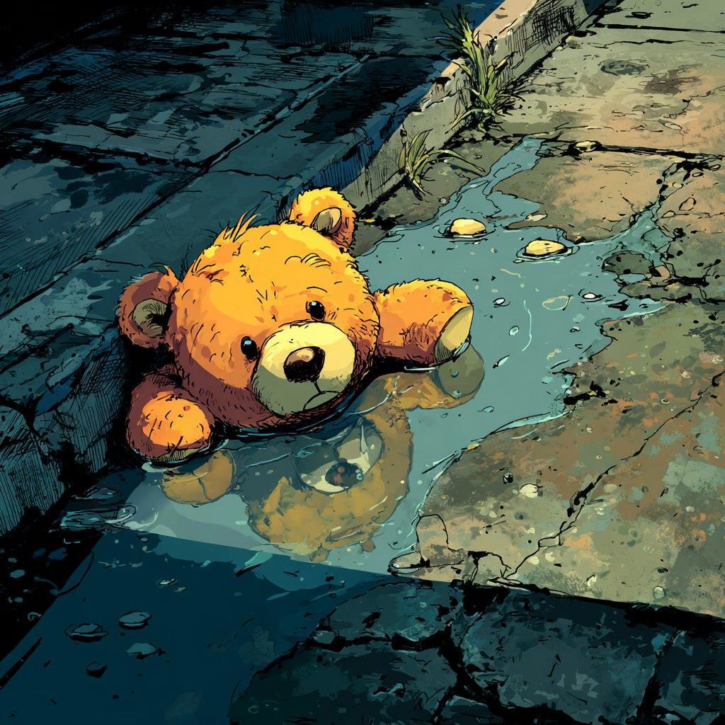 Проводив мужа рано утром на работу, я прикорнула поспать, и во сне я увидела некое подобие ролика. В нем девочка подняла с лужи игрушку-мишку, а на фоне как слова автора звучал мой голос.