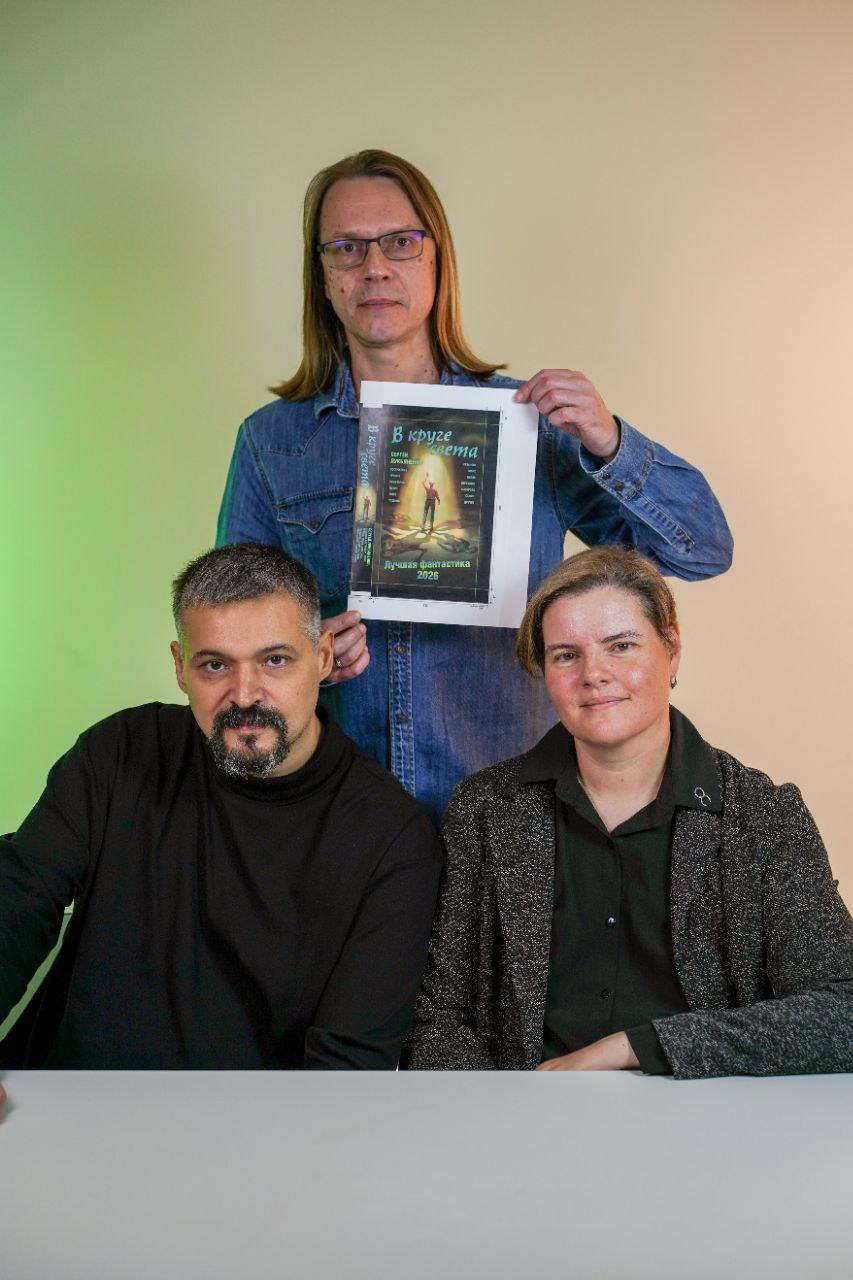 Ниже те самые фотки, на них я с первой книгой и прекрасные Алекс и Эльдар со сборником, который выйдет в ноябре.