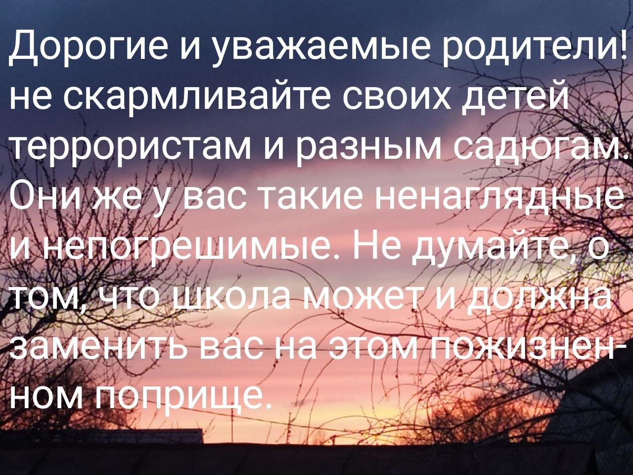 Дорогие родители!!! Ваших детей сожрут, а на сжирание вы их отдали сами...