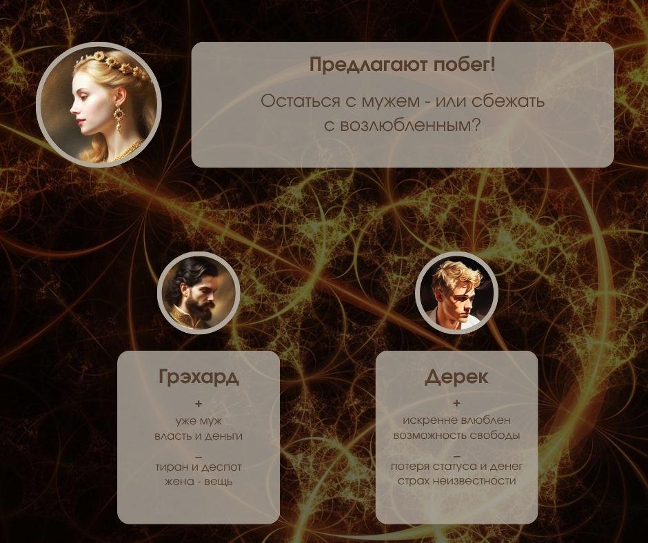 Перед Эсной в романе "Выбрать волю" стоял непростой выбор: остаться с мужем-тираном (зато он король!) - или сбежать с возлюбленным в неизвестность? Леди рассудила трезво и предпочла расчет, но кто знает, не жалела ли она об этом всю оставшуюся жизнь?