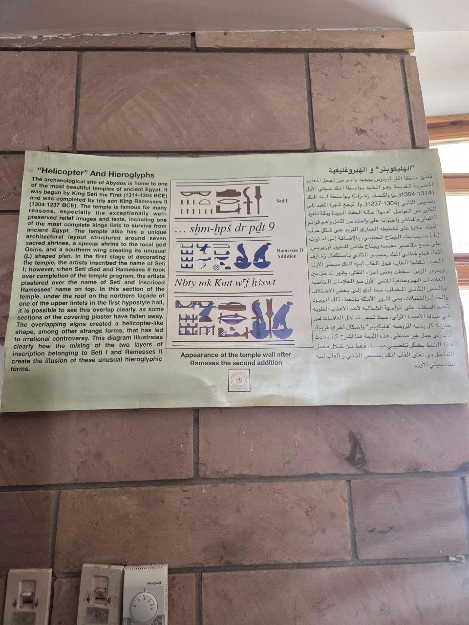 Для всех желающих найти следы палеоконтактов на стенах храма Сети I египтологи повесили большие разъяснительные плакаты прямо у касс, ну чтобы люди не тратились напрасно.