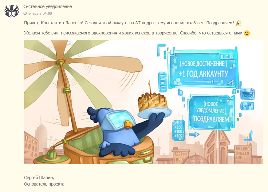 Автор: Константин ЛапенкоВремя — фьють. Чем дальше — тем быстрее. Вот и Сергей Шапин мне об этом напомнил. За что ему огромное спасибо, как и за прекрасный сервис, на котором мы вот с вами живем.