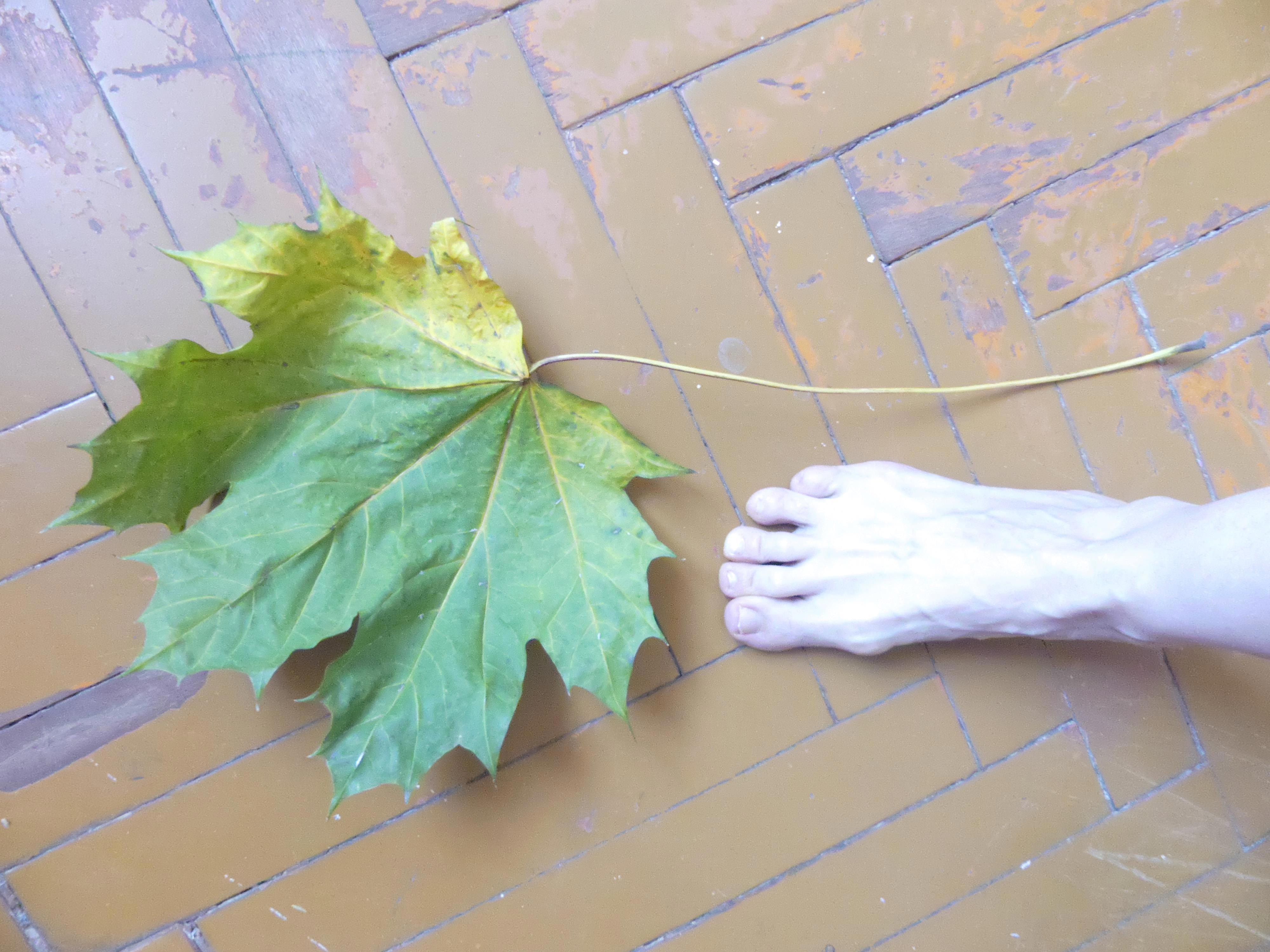 Один - забрала себе сфоткать. Вот он, больше моей ступни! Лист-слоняра, лист-лопух.)