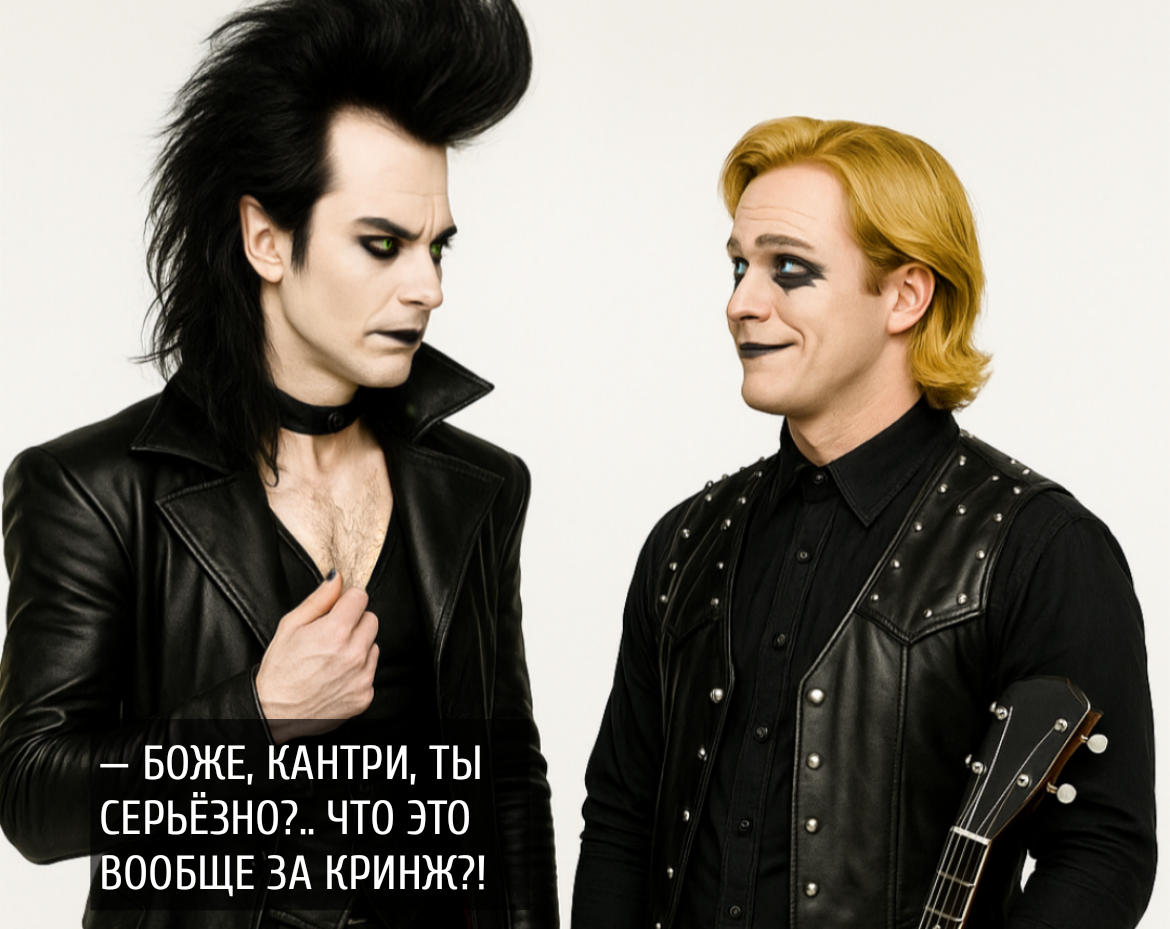 Автор: Владислава АзисПредставим другую версию развития взаимоотношений между Мистером Рок-н-Роллом и его старшими братьями Кантри и Блюзом, которые вместо негодования решили поддержать его, когда он отделился от них и променял рокабилли на хард-рок и метал...