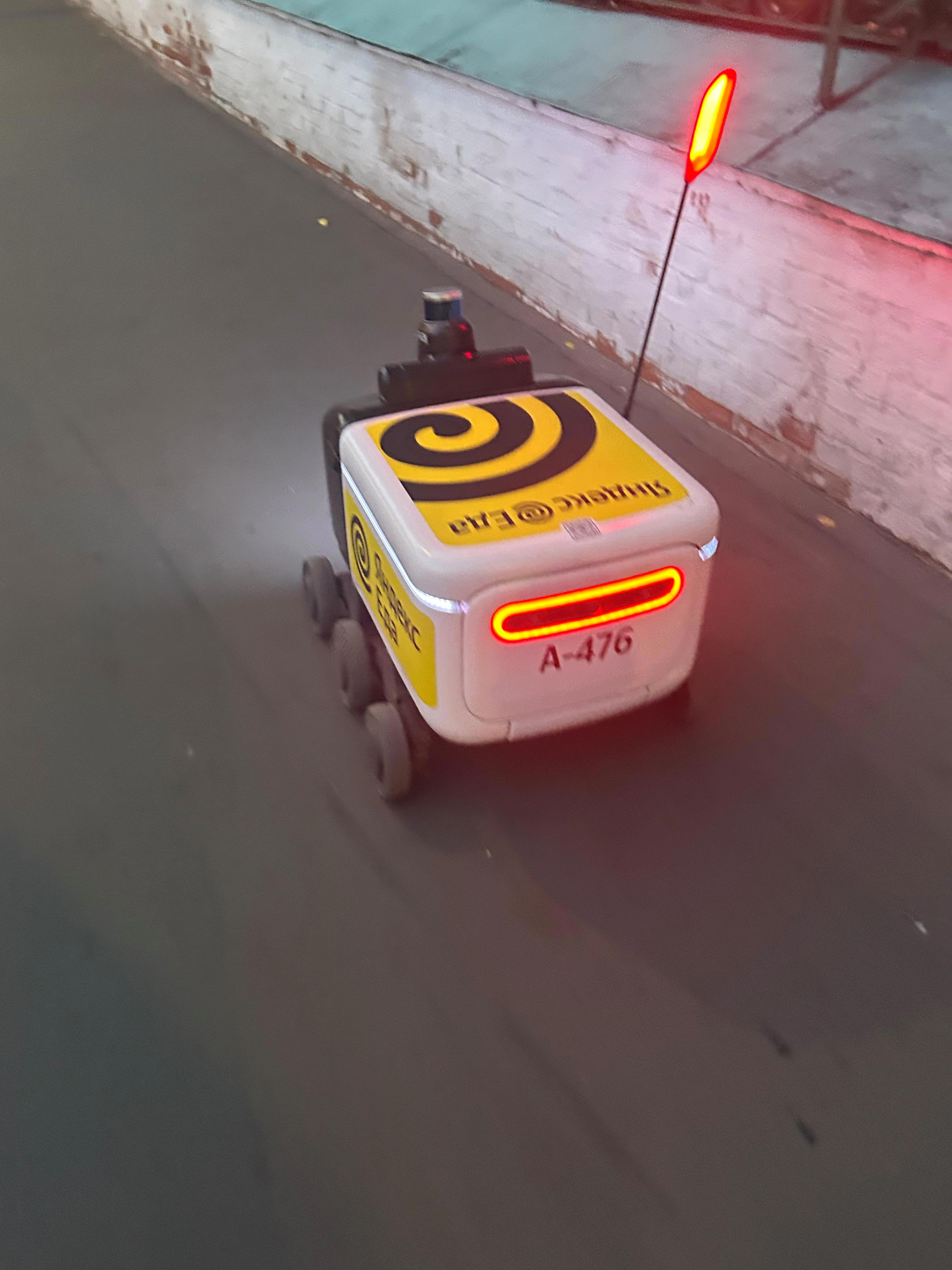Автор: SangoПро роботов доставки, которые ездят по некоторым районам Москвы, слышать то слышал (причем не первый год), но видел их ток в интернете. А нынче смог наконец-то что называется «столкнуться воочию»:
