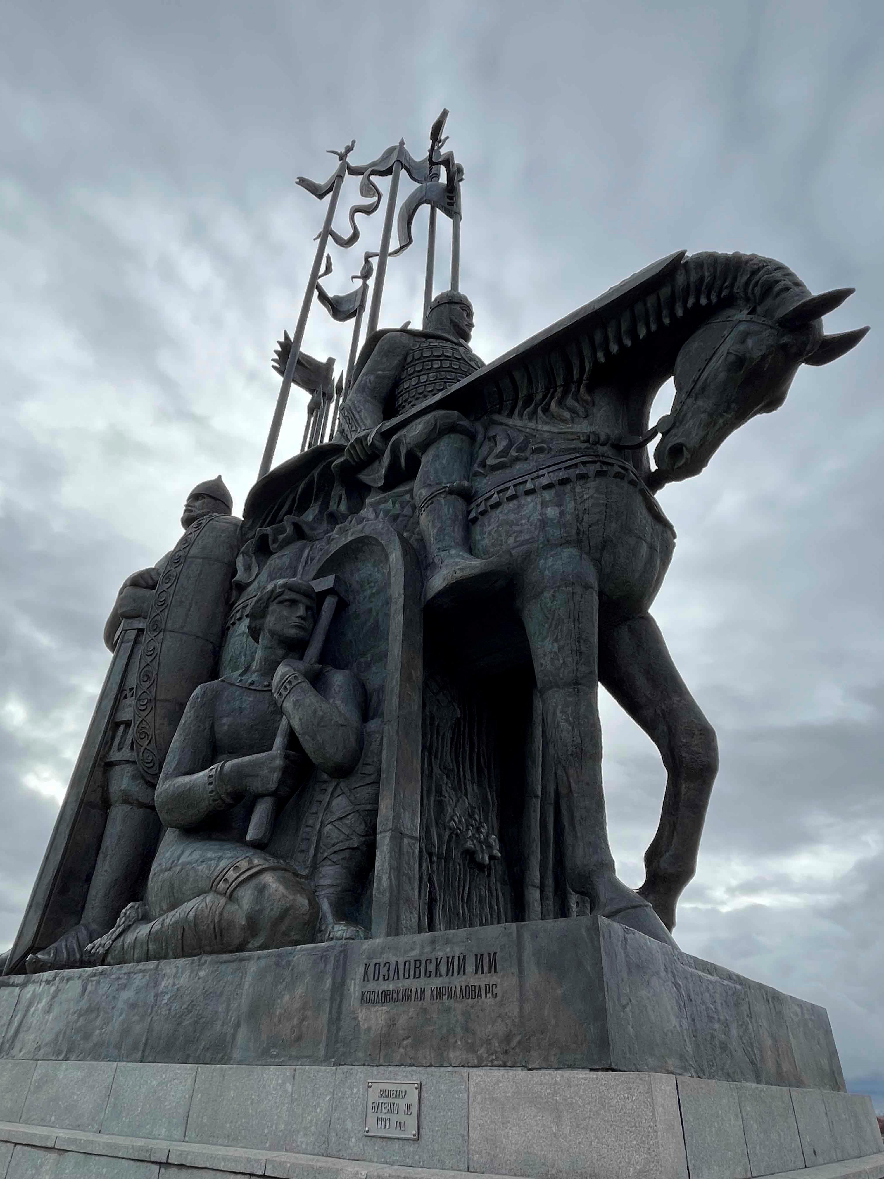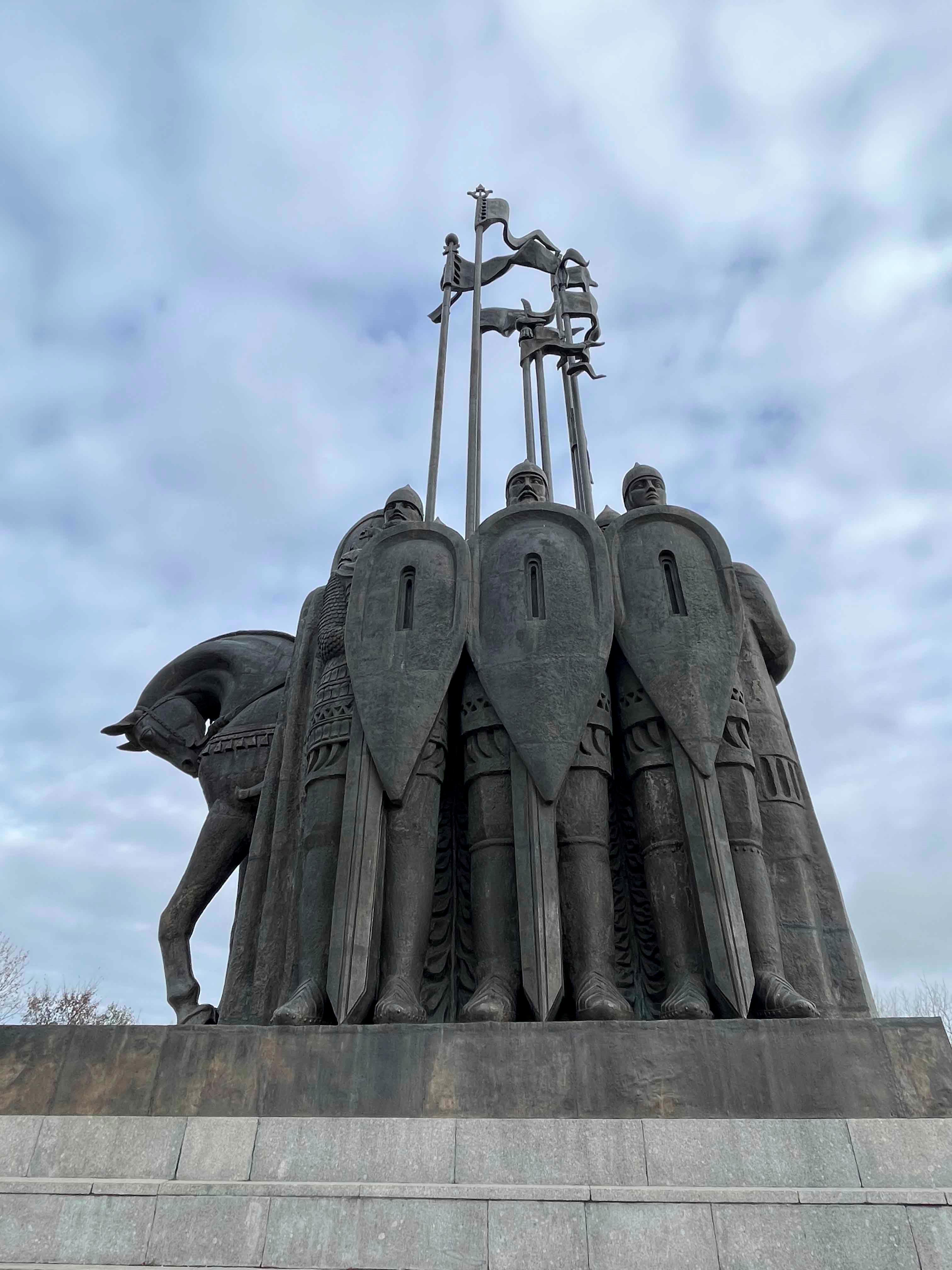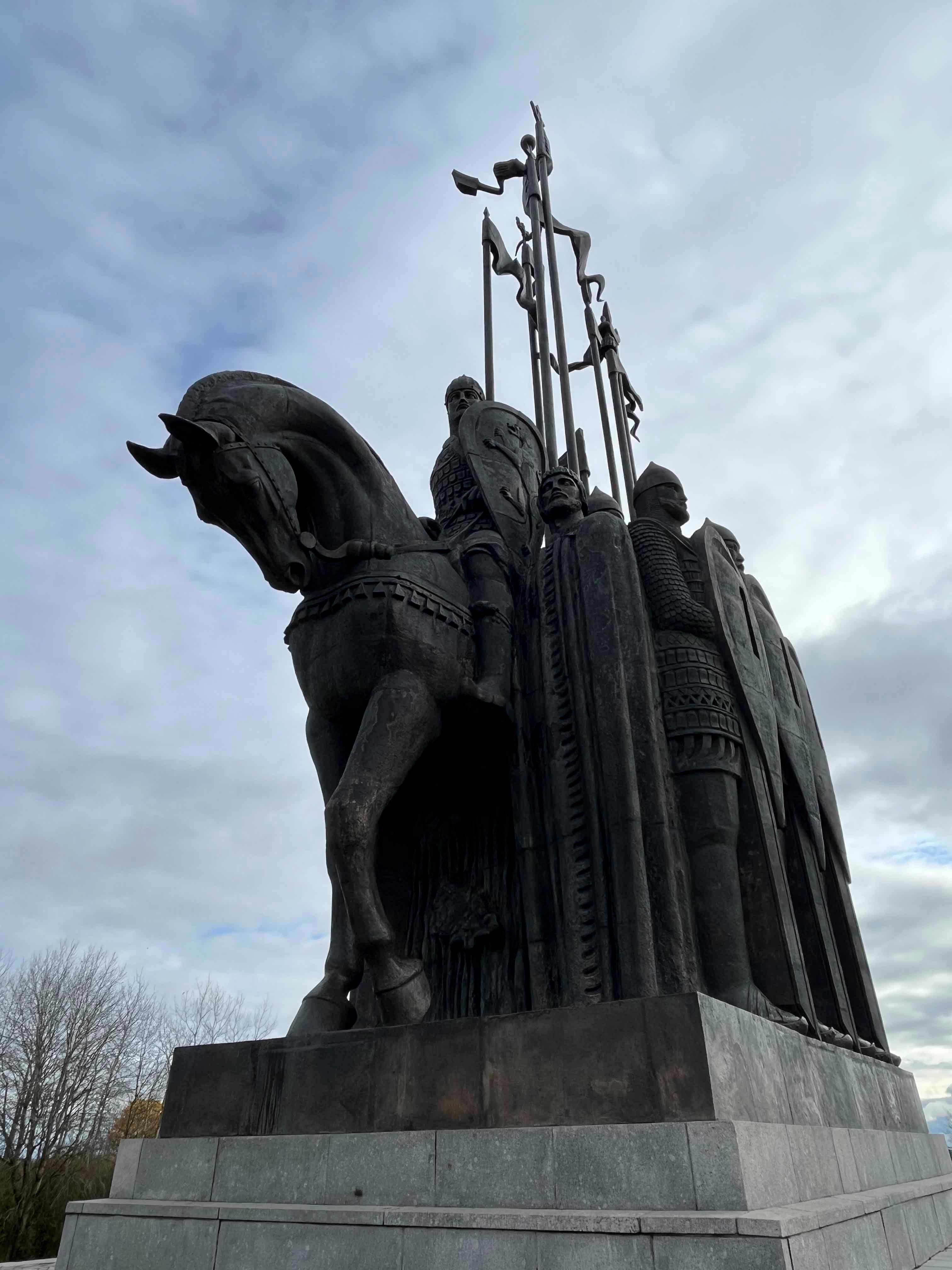 Сегодня пару слов про монумент, посвященный «Ледовому побоищу». Сколько раз ездил во Псков, а здесь не бывал. Потому что на поезде. Но в этот раз поехал на машине, специально, чтобы посетить труднодоступные места. Впрочем, этот монумент находится совсем рядом с городом, на северо-западной окраине, на горе Соколиха, где по дороге на битву собирались русские войска.