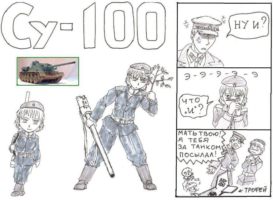 а СУ-100 в засаде. Для понимания шутки - на самоходке использовалось бывшее зенитное орудие.