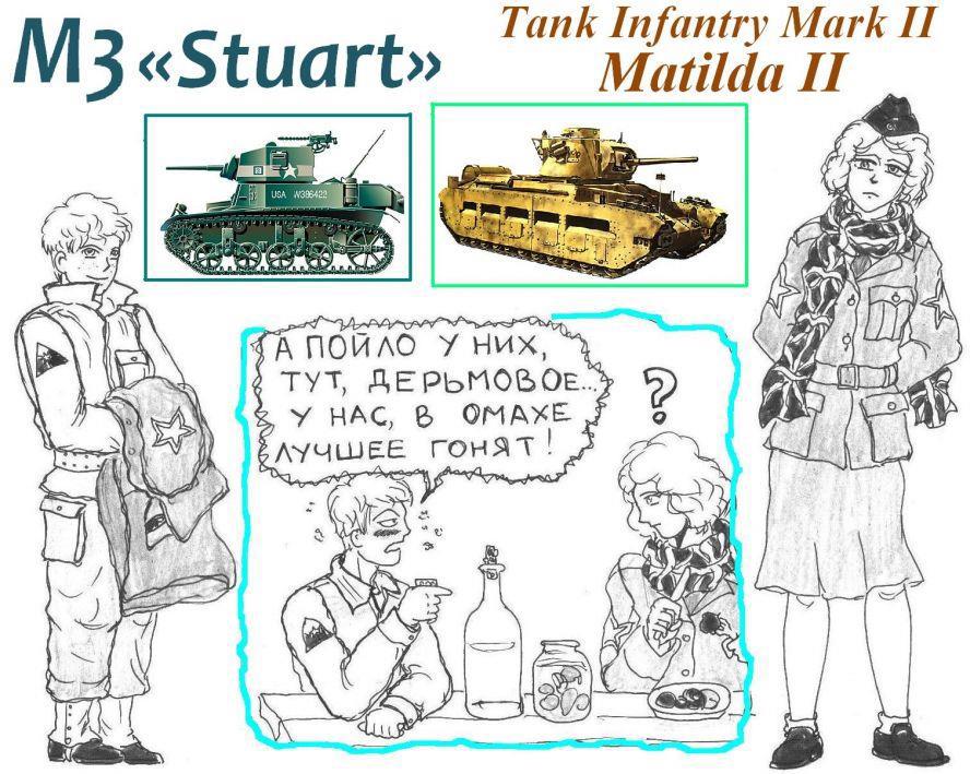 Автор: Руслан БирюшевНе японцами едиными живёт искусство "очеловечивания" танков и самолётов. Отличный украинский художник Роман Малиновский, известный в diary под ником N.K.V.D. (журнал - "Юрист-тракторист широкого профиля") немало времени посвятил "хуманизации" разнообразной военной техники - в первую очередь времён Второй Мировой. Последние пару лет он мало этим занимается, но за минувшие годы успел создать десятки замечательных образов и забавных иллюстраций, где с удивительной меткостью ухватывал особенности и "характеры" машин, придавая их человеческим версиям уникальность. Вот несколько моих любимых примеров его работы.