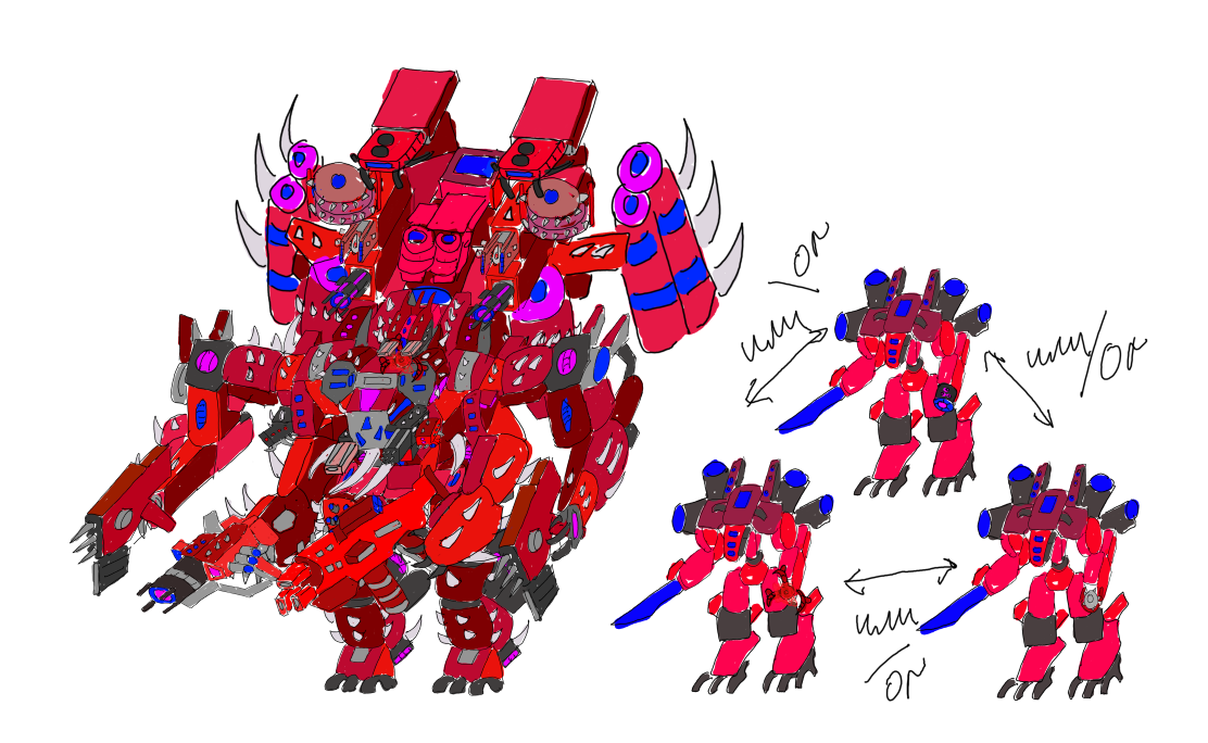 Осадный вариант позволяет установить самое мощное управляемое ракетное вооружение, манипулятор с пальцами имеет гироскопический корректор по мимо сервопривода, что позволяет использовать редкое взрывное оружие и тонфы как у герцога.Что касается боевых систем , то это больше клетки для питомцев или способ их призыва.