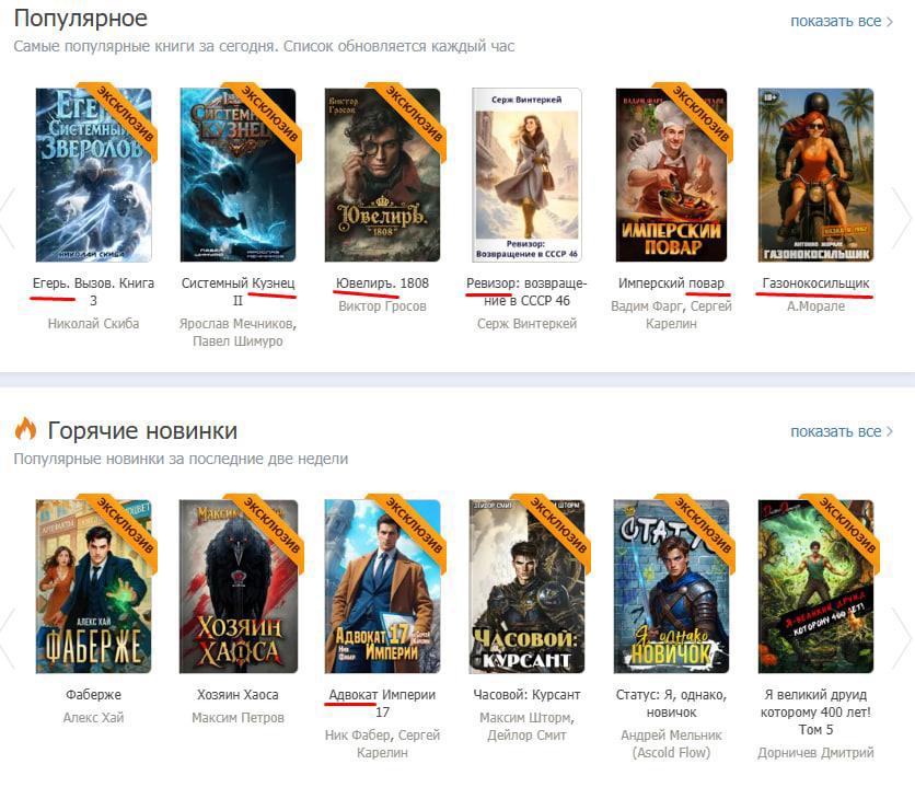 Так что зря я попездываю периодически на местных, не так уж у нас все скудно как казалось. У нас князи, императоры, господины и хозяины, вся эта благородная шелупонь в общем, хотя бы разбавлены пролетариатом - поварами, кузнецами, ювелирами и лекарями, ну и обложки у наших пока не совсем уж одинаковые - как минимум рисовка разная да и мужики с телками тоже, а тут... Мда.