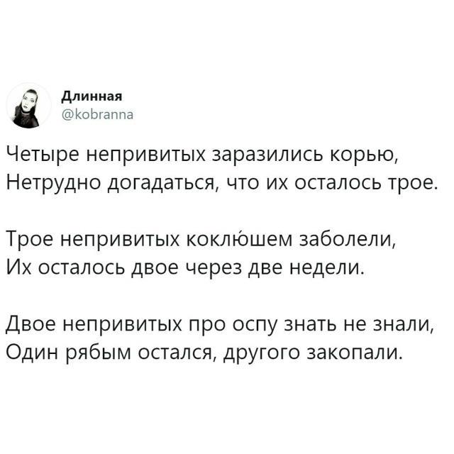 Автор: Алекс Че.В предыдущем Посте я выложил понравившийся мне стих-считалочку про антипрививочников