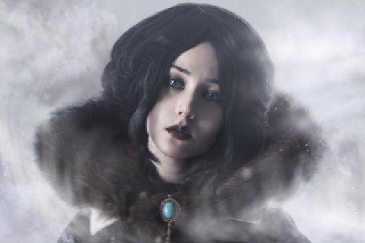 К вопросу же об образе, вот базовый облик, он практически дословно описан у меня в сцене с первой встречей герцогских дочерей. Это изначально довольно давний косплей императрицы Джессамины из первого "Дисхонореда". Я использовал его не зная того, а потом решил не менять.