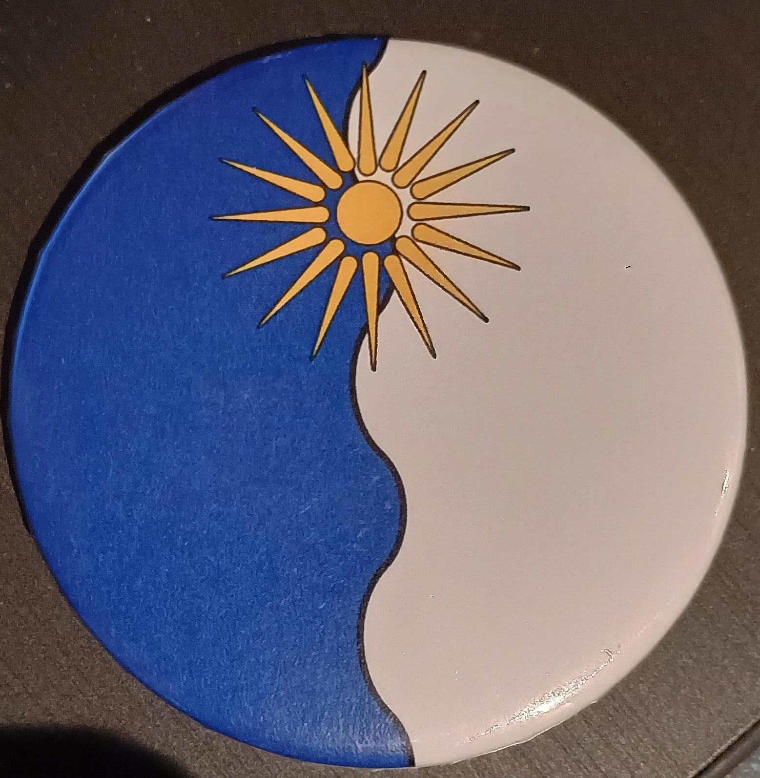 Так вот в эту субботу я максимально, кажется, приблизился к этому состоянию незамутненного Щястья. Потому что заимел штучный (!) артефакт! Фанатский значок с эмблемой магического колледжа в Пелле!