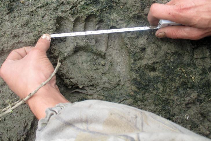 След глубокий, вмятый. Ступня у него огромная, где-то 15 см в ширину (фото очевидца):