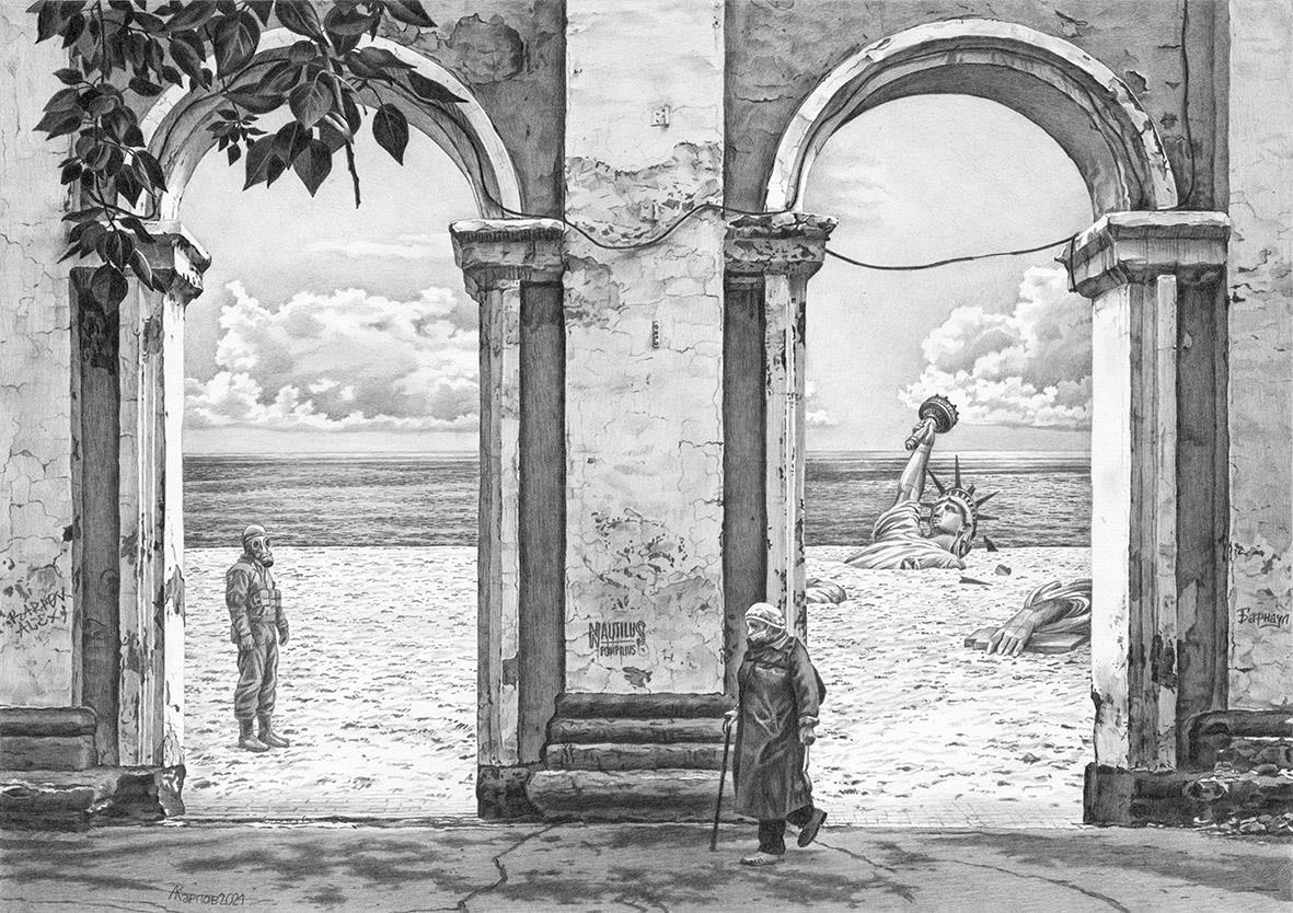 в разных техниках, это: живопись, графика, акварель. Наиболее полно, на мой взгляд Александр Александрович раскрывается именно в графических работах, нарисованных карандашом.