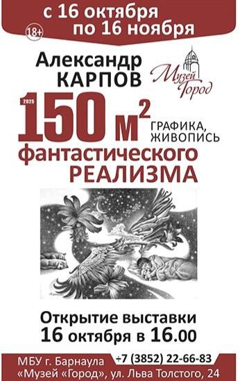 Выставка Александра Карпова будет работать до 16 ноября по адресу: город Барнаул, улица Льва Толстого, 24. Музей «Город».
