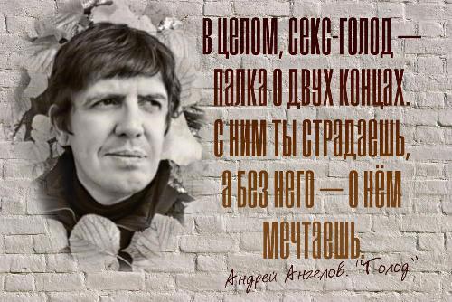 Практически весь рассказ «Голод» можно растащить на цитаты. Это неподражаемый афористичный стиль Андрея Ангелова, от которого чуть ли не сходят с ума все его фанаты и поклонники. Причём афоризмы писателя могут быть не только парадоксальными, но и взаимоисключающими. И это нормальное явление. Жизнь порой преподносит нам такие невероятные сюрпризы, которые не укладываются ни под какой афоризм.