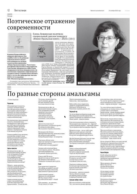 Ну и для комплекту. В сегодняшнем номере газеты «Магнитогорский металл» литературная полоса выглядит так — ссылка на pdf-ку. В Сети удобнее читать на сайте «ММ» — это здесь. А если вы опасаетесь переходить по неведомым ссылкам, то и здесь я стихи продублирую.
