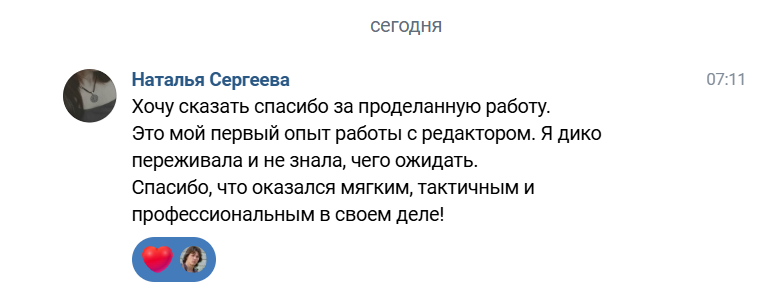 Очередной приятный отзыв. А знаешь, почему я не перестану искать новых клиентов на редактуру? Думаешь, из-за жадности? Конечно, да, то есть нет, то есть... Короче!