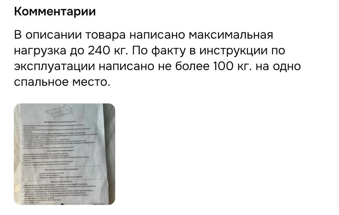 И если что-то с кроватью случится, то производитель скажет, что вы превысили предельно допустимую нагрузку.