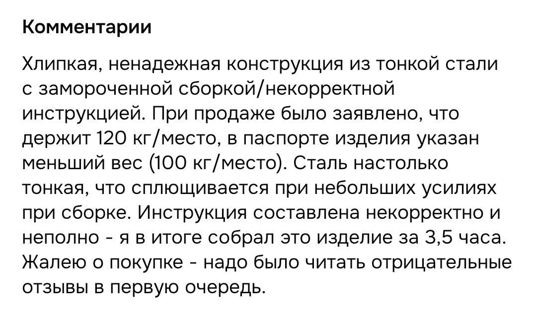 При том, что уже на фото видео, какая хлипкая боковая царга и что она даже без нагрузки идёт дугой.