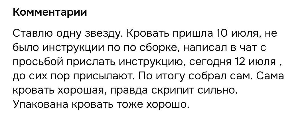 Кровать хорошая, только скрипит... Эх, покупатель.. хорошие кровати не должны скрипеть!
