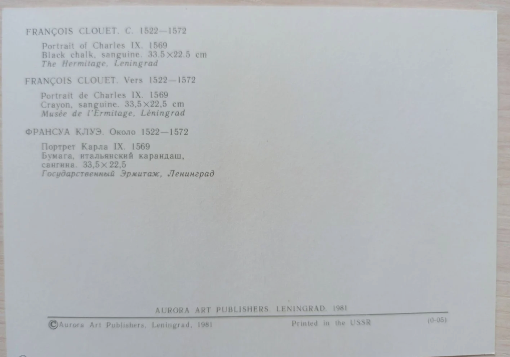 Открытка СССР. Портрет Карла 9. Клуэ. 1981г.