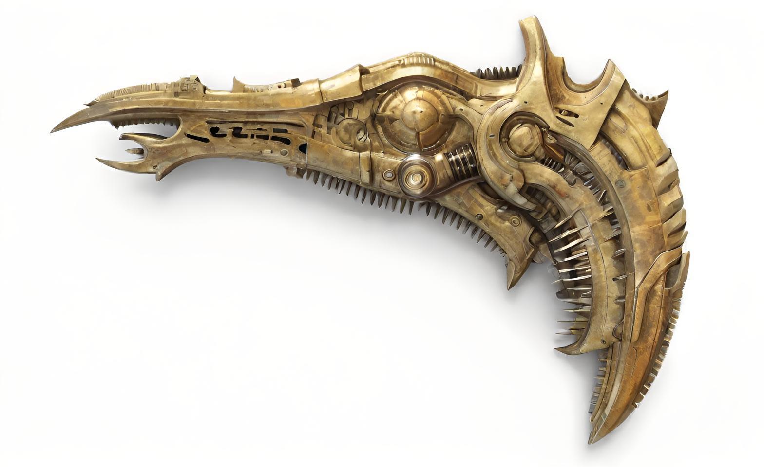 Причём, вся эта кожа вкривь и вкось прошита грубыми нитями, а сама тварь, вместо ног, враскачку, передвигается на ходулях — двух заржавевших железяках с тягами, шарнирами и пружинами, которые соединены с его телом. Ходули скрываются в туловище и двигаются вверх и вниз, впечатывая обрубки этих механических конечностей в грязь.