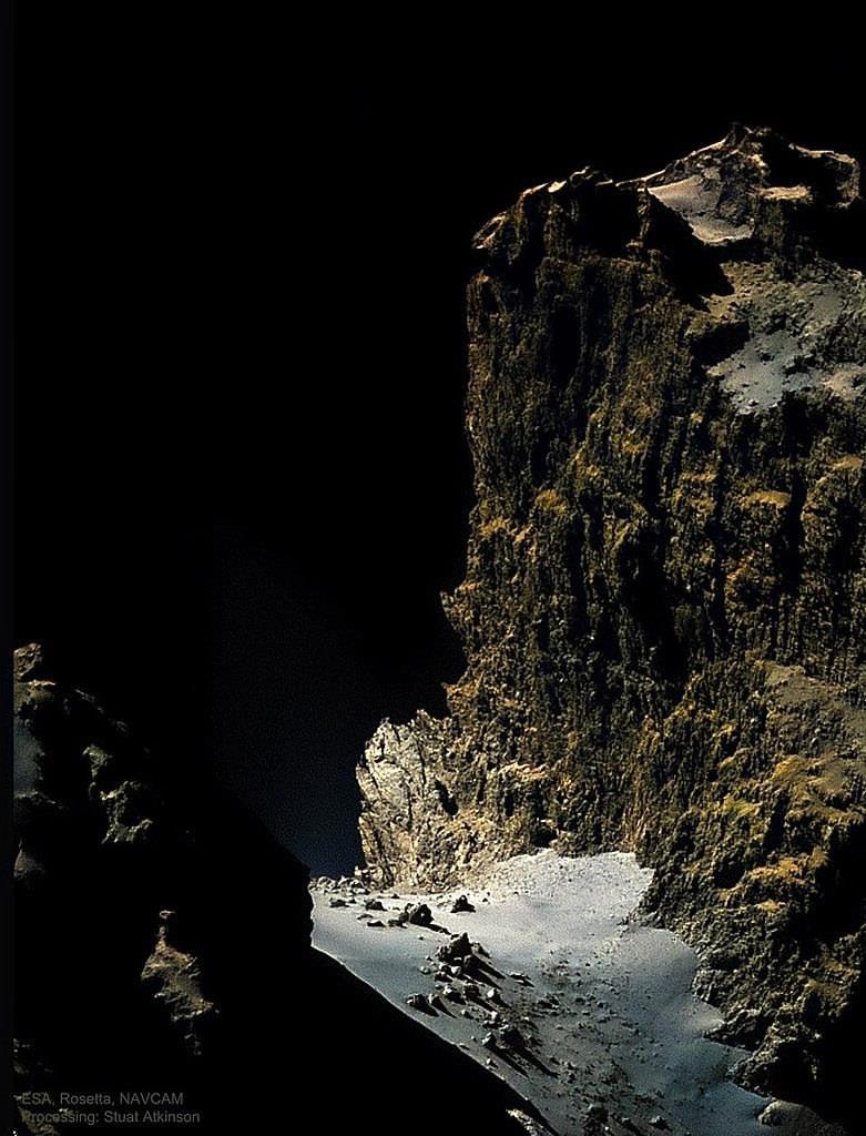 Да и вообще вся поверхность там ужасно неровная. Ну не позаботилась комета сделать космодром для удобства исследователей!