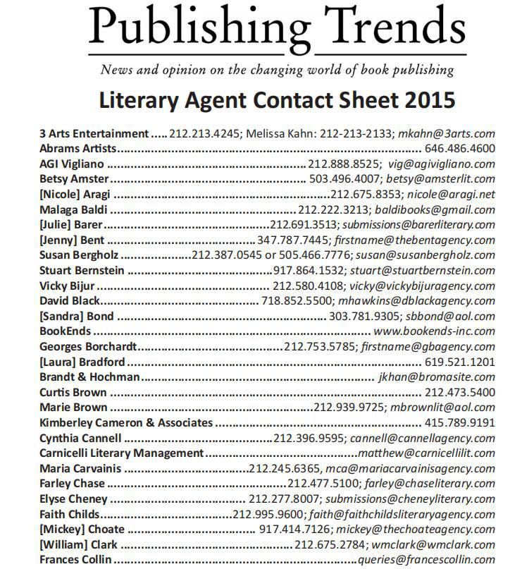 Ищите актуальные списки. Может вам повезет и вы найдете литературного агента, как я нашел на курсах "Сам себе издатель" в Русской Академии Ремесел. https://academycrafts.ru/courses/distantsionnoe-obuchenie/kurs-pisatel/